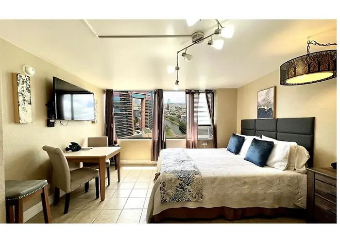 수영장, 수영장, 소풍 공간을 제공하는 King Bed, Spacious, Legal, View 아파트는 호놀룰루 동물원에서 2.3km 떨어져 있습니다. 와이키키 지역에 위치한 이 숙소는 Ala Wai Canal에도 인접해 있습니다.